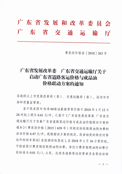 轉發廣東省發展改革委 廣東省交通運輸廳關于啟動廣東省道路客運價格與成品油價格聯動方案的通知