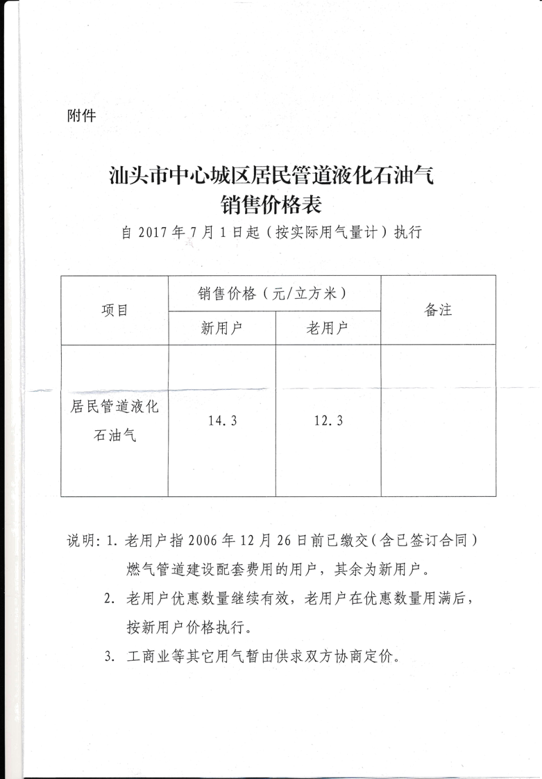 轉發汕頭市發展和改革局關于調低中心城區居民管道液化石油氣銷售價格的通知