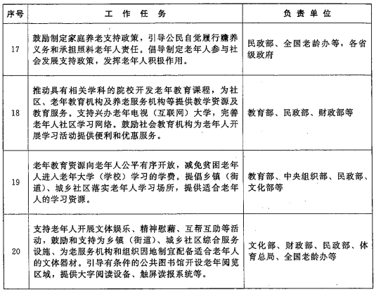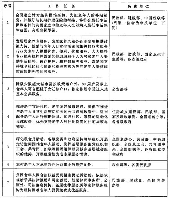 廣東省人民政府辦公廳轉發國務院辦公廳 關于制定和實施老年人照顧 服務項目意見的通知 各地級以上市人民政府,各縣(市、區)人民政府,省政府各部門、各直屬機構: 經省人民政府同意,現將《國務院辦公廳關于制定和實施老年人照顧服務項目的意見》(國辦發〔2017〕52號,以下簡稱《意見》)轉發給你們,請認真貫徹執行。 我省已進入人口老齡化快速發展階段,老年人照顧服務呈現出需求大、多樣化等新特點,做好老年人照顧服務工作意義重大。各地、各有關部門要高度重視,切實加強組織領導,強化部門配合,以老年人權益保障法為基本依據,以滿足老年人迫切需求為導向,大力推進老年人照顧服務工作,確保取得實效。省有關部門要按照《意見》明確的重點任務及分工安排,結合國家部委具體工作部署,逐項制訂我省的實施辦法或方案,明確時間節點、進度要求和配套措施,并認真組織實施。各地要結合本地實際,細化目標任務,加大統籌推進力度,確保《意見》各項重點任務落到實處。各地、省有關部門出臺的配套政策措施要及時報省民政廳備案。對各地、各有關部門落實情況,省政府將適時組織開展督促檢查。 廣東省人民政府辦公廳 2017年10月3日 國務院辦公廳關于制定和實施 老年人照顧服務項目的意見 國辦發〔2017〕52號 各省、自治區、直轄市人民政府,國務院各部委、各直屬機構: 大力弘揚敬老養老助老社會風尚,做好老年人照顧服務工作,提升老年人的獲得感和幸福感,是社會主義制度優越性的具體體現,是社會主義核心價值觀的內在要求,是實現脫貧攻堅、全面建成小康社會的重要任務,是積極應對人口老齡化,推動民生改善、促進社會和諧的實際舉措。根據《中華人民共和國老年人權益保障法》,經黨中央、國務院同意,現就制定和實施老年人照顧服務項目提出如下意見: 一、總體要求 ?。ㄒ唬┲笇枷?。 全面貫徹黨的十八大和十八屆三中、四中、五中、六中全會精神,深入貫徹習近平總書記系列重要講話精神和治國理政新理念新思想新戰略,落實黨中央、國務院關于老年人照顧服務工作的決策部署,從我國國情出發,立足老年人法定權益保障和服務需求,整合服務資源,拓展服務內容,創新服務方式,提升服務質量,讓老年人享受到更多看得見、摸得著的實惠,使老年人共享改革發展成果,推動實現老有所養、老有所醫、老有所為、老有所學、老有所樂。 ?。ǘ┗驹瓌t。 黨政主導,社會參與。堅持黨委領導、政府主導,發揮黨委和政府在統籌規劃、示范引領、監督管理等方面的作用。堅持社會參與、全民行動,注重發揮家庭養老的基礎作用,鼓勵和引導社會力量開展專業化、多元化照顧服務。 突出重點,適度普惠。根據經濟社會發展水平細化照顧服務項目,合理確定照顧服務的對象、內容和標準,兼顧不同年齡特點,重點關注高齡、失能、貧困、傷殘、計劃生育特殊家庭等困難老年人的特殊需求。 因地制宜,循序漸進。引導和推動各地結合實際,積極穩妥地開展老年人照顧服務工作,堅持量力而行、穩步推進。鼓勵有條件的地方探索創新、先行先試,為逐步擴大照顧服務范圍積累經驗。 政策銜接,強化服務。注重與社會保險、社會救助、社會福利、慈善事業等政策制度有效銜接,統籌各類服務資源,形成保障合力,讓老年人享受更多優質、便捷、公平、安全的優先優惠服務。 城鄉統籌,和諧共融。加大基本公共服務資源向農村傾斜配置力度,提高農村老年人照顧服務的可及性和便利性。強化照顧服務過程中的代際支持,營造互尊互愛互助的良好氛圍,增進社會和諧。 二、重點任務 (一)全面建立針對經濟困難高齡、失能老年人的補貼制度,并做好與長期護理保險的銜接。將符合最低生活保障條件的貧困家庭中的老年人全部納入最低生活保障范圍,實現應保盡保。 ?。ǘ┌l展居家養老服務,為居家養老服務企業發展提供政策支持。鼓勵與老年人日常生活密切相關的各類服務行業為老年人提供優先、便利、優惠服務。大力扶持專業服務機構并鼓勵其他組織和個人為居家老年人提供生活照料、醫療護理、精神慰藉等服務。鼓勵和支持城鄉社區社會組織和相關機構為失能老年人提供臨時或短期托養照顧服務。 ?。ㄈ┏龢O少數超大城市需按政策落戶外,80周歲及以上老年人可自愿隨子女遷移戶口,依法依規享受遷入地基本公共服務。 ?。ㄋ模┩七M老年宜居社區、老年友好城市建設。提倡在推進與老年人日常生活密切相關的公共設施改造中,適當配備老年人出行輔助器具。加強社區、家庭的適老化設施改造,優先支持老年人居住比例高的住宅加裝電梯等。 ?。ㄎ澹┥罨蠢显禄顒?,各級黨委和政府堅持每年組織開展走訪慰問困難老年人活動。發揮基層服務型黨組織和工會、共青團、婦聯等群團組織以及城鄉基層社會組織的優勢,開展經常性為老志愿服務活動。 ?。┺r村老年人不承擔興辦公益事業的籌勞義務。 ?。ㄆ撸┴毨Ю夏耆艘蚝戏嘁媸艿角趾μ崞鹪V訟的,依法依規給予其法律援助和司法救助。鼓勵律師事務所、公證處、司法鑒定機構、基層法律服務所等法律服務機構為經濟困難老年人提供免費或優惠服務。 (八)進一步推動擴大法律援助覆蓋面,降低法律援助門檻,有條件的地方可適度放寬老年人申請法律援助的經濟困難標準和受案范圍。 ?。ň牛┲С殖