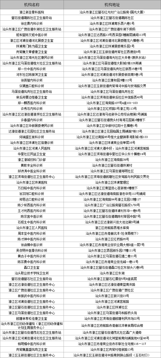 濠江區醫療機構信息一覽表(截至2018年11月)