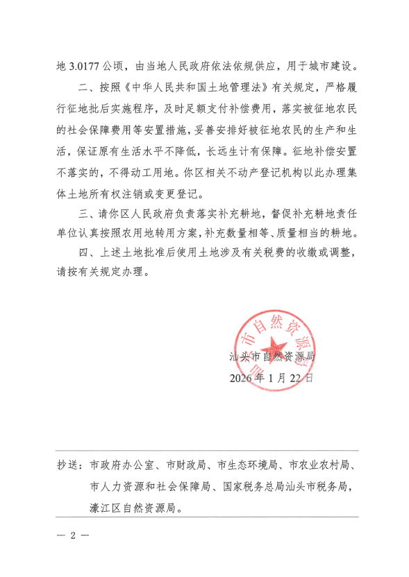2.關于汕頭市濠江區(qū)2025年度第五批次城市建設用地的批復