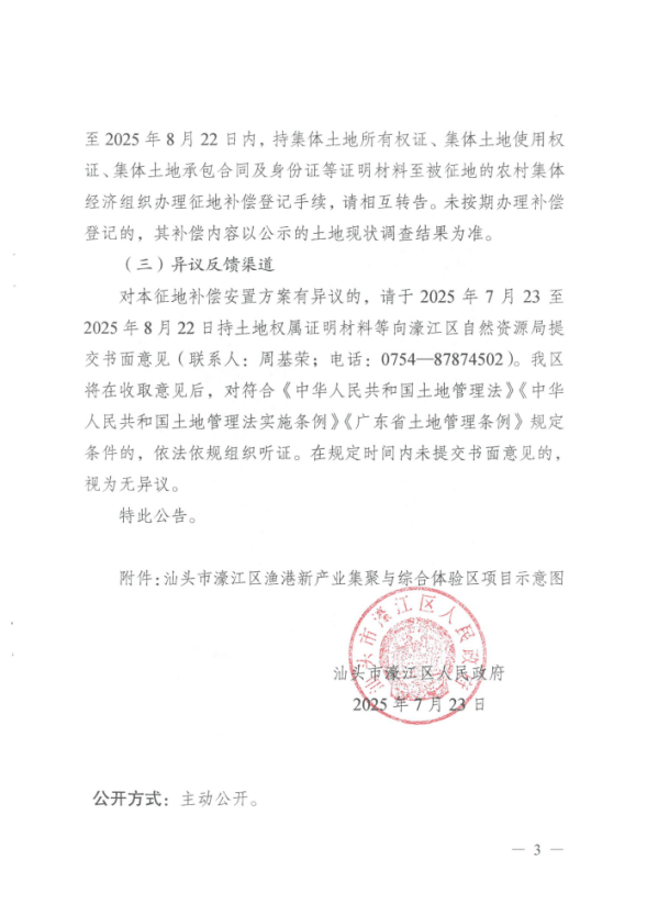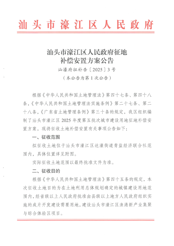 3.汕頭市濠江區(qū)人民政府征地補償安置方案公告