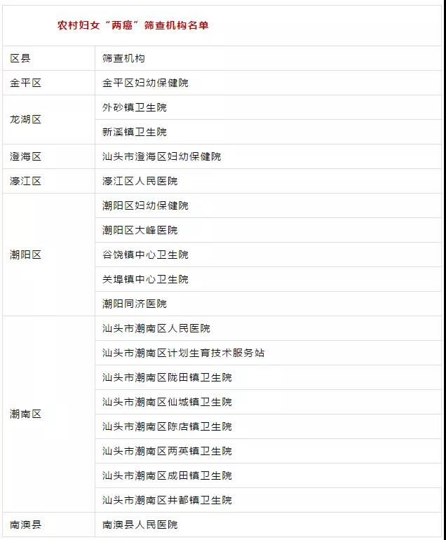 據悉,汕頭市35-64周歲的農村戶籍婦女都可進行“兩癌”免費篩查。