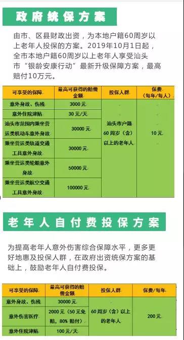 據悉,自今年10月1日起實施的“銀齡安康行動”統保方案對因意外傷害導致身故、傷殘;因意外傷害導致的住院;汕頭市范圍內乘坐營運類機動車意外身故;乘坐營運類軌道交通工具意外身故;乘坐營運類輪船意外身故;乘坐營運類航空交通工具意外身故等意外情況都將進行保障,如果老年人不幸遭遇這些情況,將可獲得賠償金額或津貼。