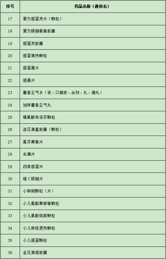 目錄內(nèi)共涵蓋43種藥品,包括布洛芬、連花清瘟膠囊、去痛片、小柴胡沖劑、維C銀翹片等。