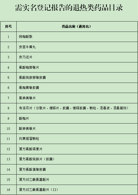 近日,根據(jù)省疫情防控指揮部辦公室要求,廣東省藥品監(jiān)管局組織相關(guān)醫(yī)療專家對新型冠狀病毒肺炎用藥品種進行梳理,擬定了《需實名登記報告的退熱類藥品目錄》。