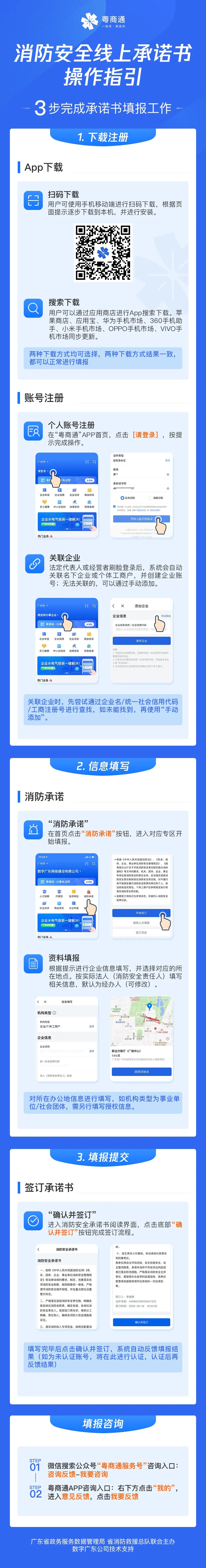 活動內容 企事業單位自主登錄粵商通平臺,自主開展平臺注冊工作,切實完善相關信息,簽訂消防安全承諾書。 操作指引 許一個承諾,盡一份責任