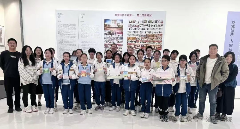 本次活動特別邀請到中國美術家協會會員、畢業于西安美術學院油畫系的賀文清老師現場指導。在“鮀城毓秀”畫展現場,265件來自全國各地水彩名家的力作成為同學們的“活教材”——既有描繪時代風貌的恢弘場景,也有捕捉生活細節的溫情瞬間。同學們手持畫筆,在老師的悉心指導下,認真臨摹名家作品,感受水彩藝術的光影魅力與創作精神。