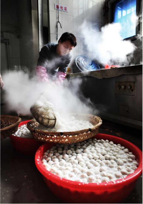 達濠魚丸制作技藝獨特且講究,主要以濠江本港優質海魚,如蛇鯔魚(那哥魚)、馬鮫魚、海鰻等為原料,經沖洗、去頭去肚、剔骨、刮魚肉后,揉壓成魚糜。然后將魚糜放進木桶內,用手掌快速用力拍打起膠,加入一定比例的蛋清、精鹽、味精和水淀粉,拍打成糜糊狀,從手心虎口舀出,放入溫水中凝固定形后,經煮制后晾涼,食用時再烹調煮熟。成品的達濠魚丸呈白色或灰白色的圓球狀,入口魚香濃厚,口感脆爽彈牙、鮮美香甜。締造美味魚丸的傳統技藝至今仍無法以機器完全替代,并逐漸衍生出蝦丸、墨斗丸等產品。
