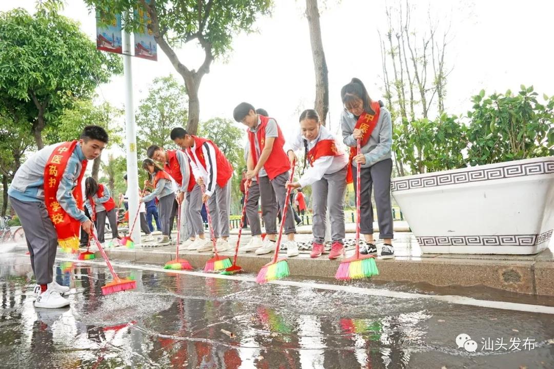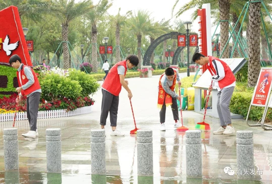“高壓水槍先行,同志們后面跟上!”上午9時,開放廣場上“干勁十足”,無論是龍湖區領導或是志愿者,大家都是勞動群體中的一員。中醫藥技工學校學生們在老師的帶領下“鉚足勁開干”,在勞動中揮灑著青春的汗水。一名名叫文翠婷的學生干得特別起勁,而她并非汕頭本地人?!懊看螀⒓觿撐幕顒游叶继貏e開心,總覺得自己能為別人干點事很幸福?!边@名來自梅州的女孩告訴記者,近年來,學校積極鼓勵同學們參與文明城市創建活動,每次發布名額都會被同學們瞬間“搶空”,“除了學校組織的活動,我們學生社團自己也會開展志愿服務活動,比如利用我們所學的專業知識,到敬老院為爺爺奶奶們針灸、拔罐。”