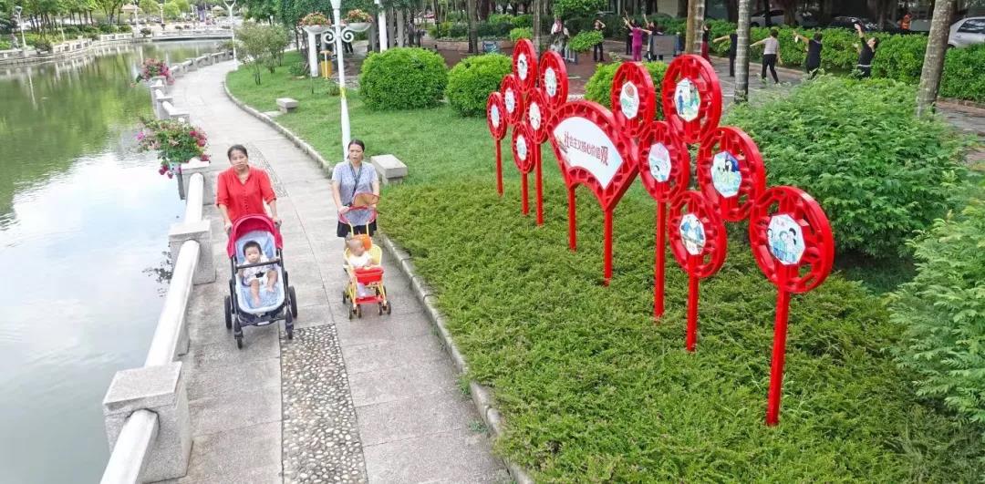 ▲龍湖區(qū)政府前廣場,市民跳起健身操。