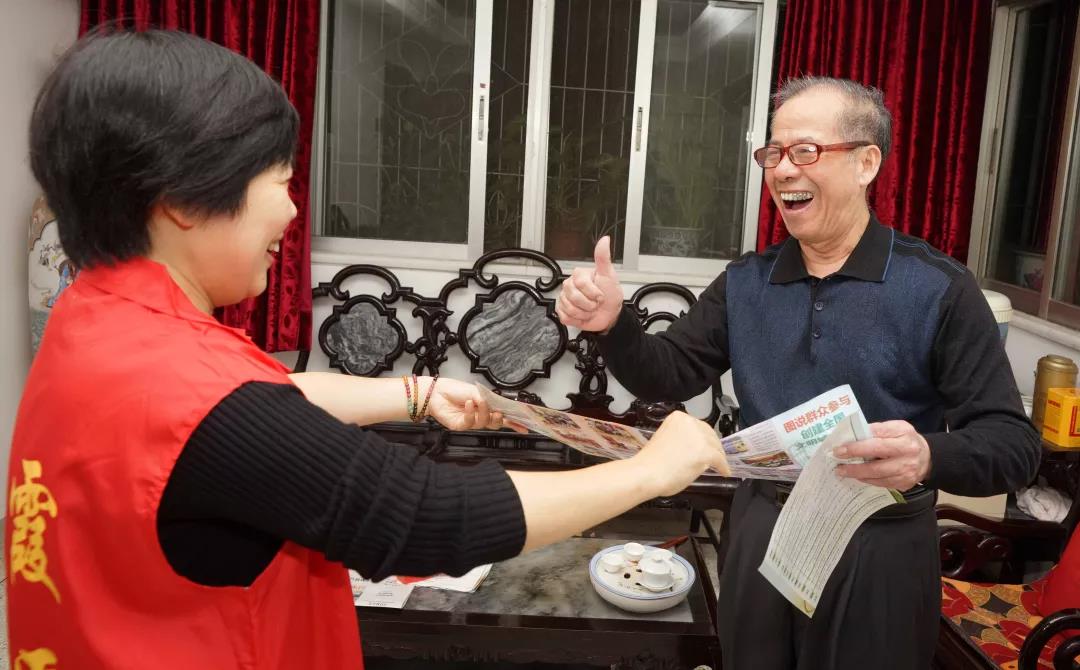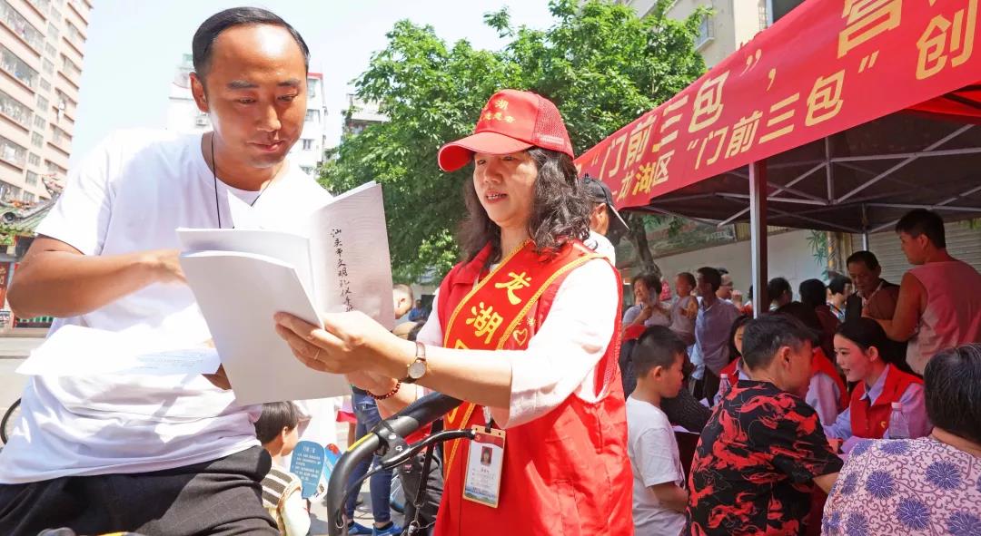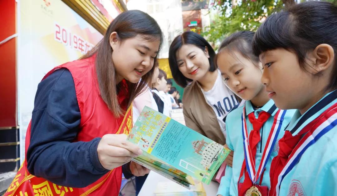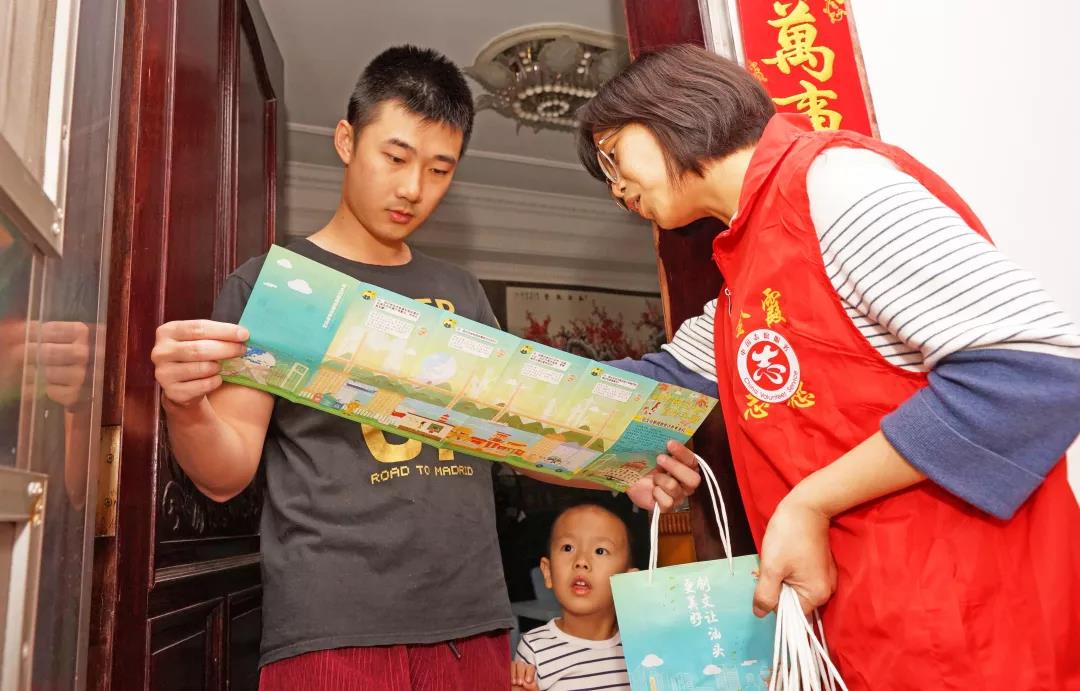 ▲志愿者開展創(chuàng)文入戶宣傳。