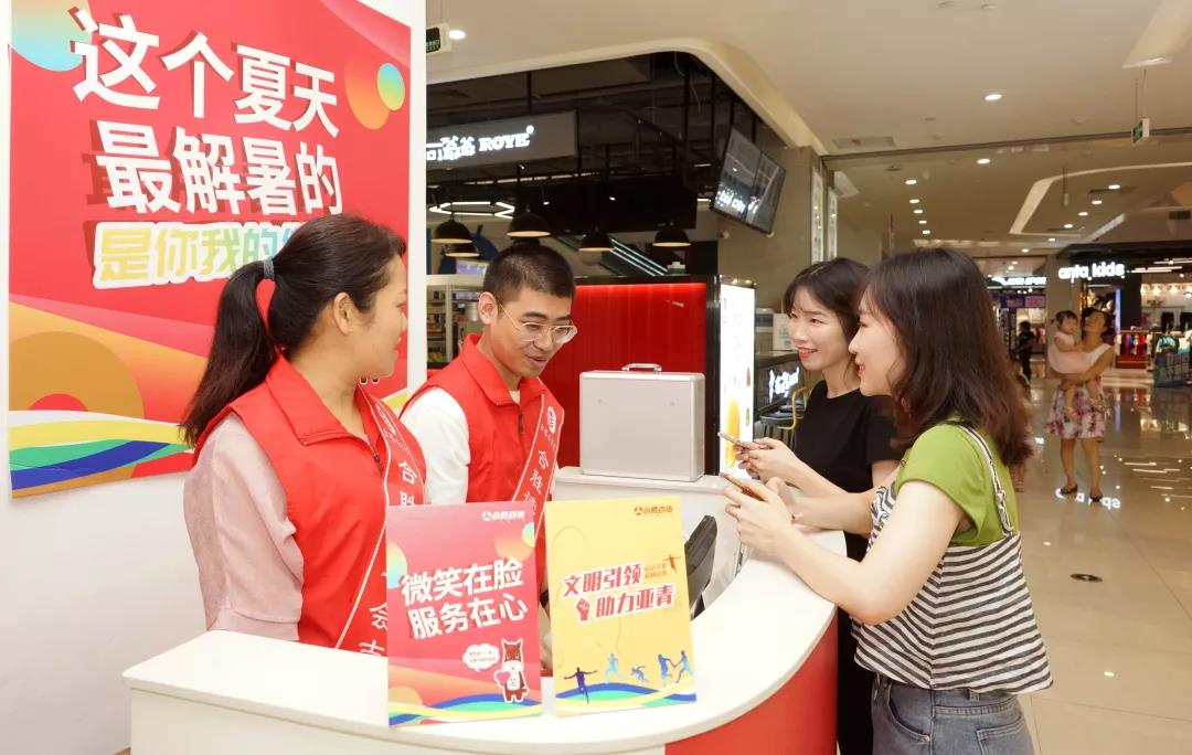 ▲各大商場(chǎng)開設(shè)志愿服務(wù)臺(tái)。