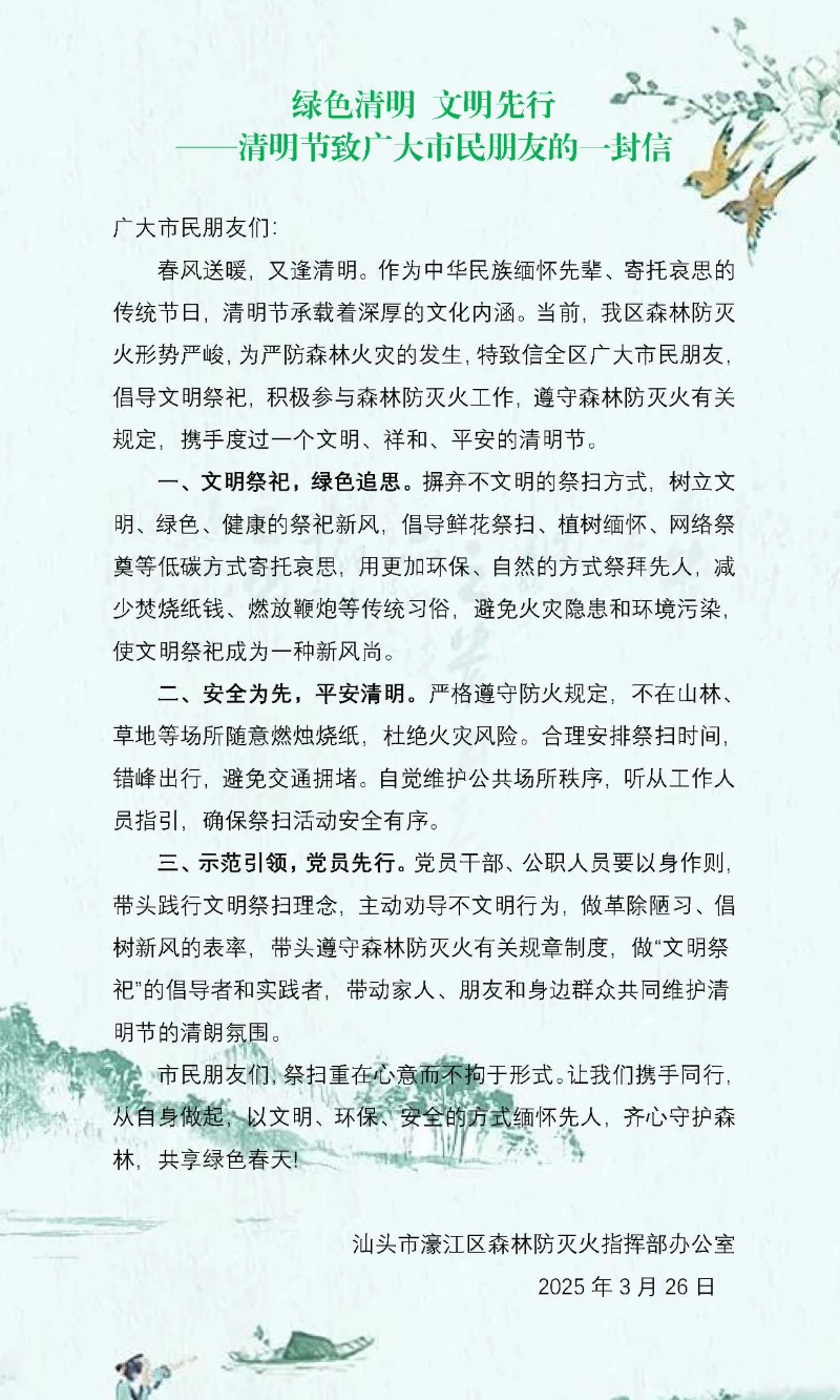 綠色清明 文明先行——清明節致廣大市民朋友的一封信