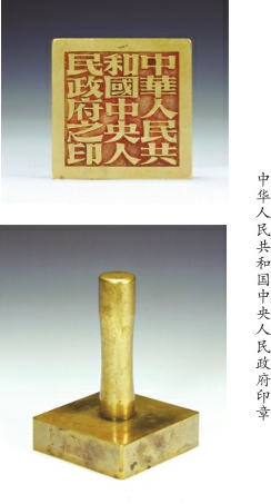 1949年8月19日,“政府印鑄問(wèn)題座談會(huì)”在北京飯店舉行,張樾丞等14人出席。會(huì)議制定了新中國(guó)政府印信的“型式”“字體”“質(zhì)料”“字文”等印鑄問(wèn)題,同時(shí)修正通過(guò)“中央人民政府政務(wù)院印鑄局組織條例”。9月21日至30日,中國(guó)人民政治協(xié)商會(huì)議第一屆全體會(huì)議召開(kāi),會(huì)議通過(guò)《中華人民共和國(guó)中央人民政府組織法》等文件。“中華人民共和國(guó)”國(guó)名以合乎法律規(guī)定的形式確定下來(lái),國(guó)印印文“中華人民共和國(guó)中央人民政府之印”也隨之被最終正式確定。
