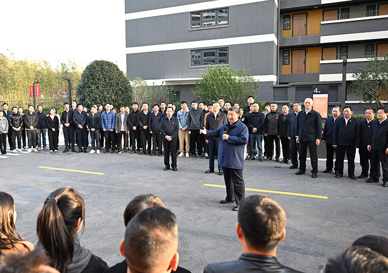 近年來,上海市加快保障性租賃住房建設,為許多來滬新市民、青年人和一線務工人員提供了住房保障。29日下午,習近平到閔行區新時代城市建設者管理者之家考察。聽了當地加大保障性租賃住房籌措建設力度、構建“一張床、一間房、一套房”多層次租賃住房供應體系的情況介紹,習近平給予充分肯定。他先后走進社區住宅型、宿舍型出租房源租戶的住房和公共廚房、公共洗衣房等共享空間,仔細了解在此居住的城市一線工作者的生活狀況。總書記無微不至的殷切關懷,讓在場所有人感動。離開時,社區居民紛紛圍攏過來歡送總書記。習近平說,看到來自五湖四海的建設者在這里安居樂業,感到很高興。城市不僅要有高度,更要有溫度。我們的社會主義就是要走共同富裕的路子。外來務工人員來上海作貢獻,同樣是城市的主人。要踐行人民城市理念,不斷滿足人民群眾對住房的多樣化、多元化需求,確保外來人口進得來、留得下、住得安、能成業。