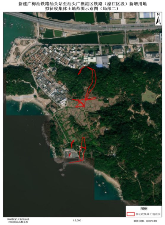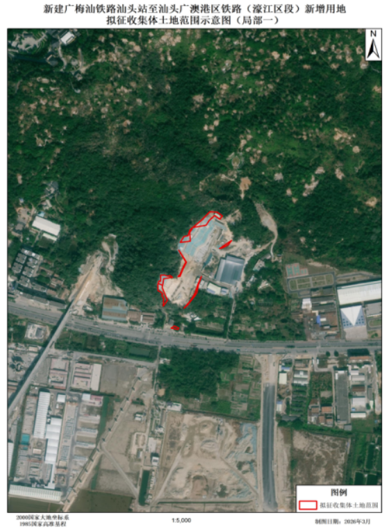 一、擬征收土地的征收目的:新建廣梅汕鐵路汕頭站至汕頭廣澳港區鐵路(濠江區段)新增用地。